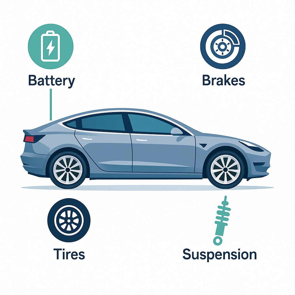 「電気自動車はシンプルだから壊れにくい」と思われがちですが、実際にはブレーキ、サスペンション、タイヤなどの消耗部品はガソリン車と同じように摩耗します。