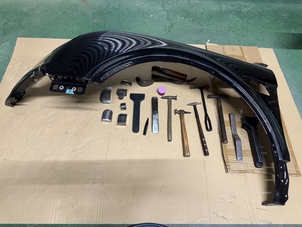 👉 鋼板と会話するように状態を見極めながら、歪みを整えて元の形に戻していきます